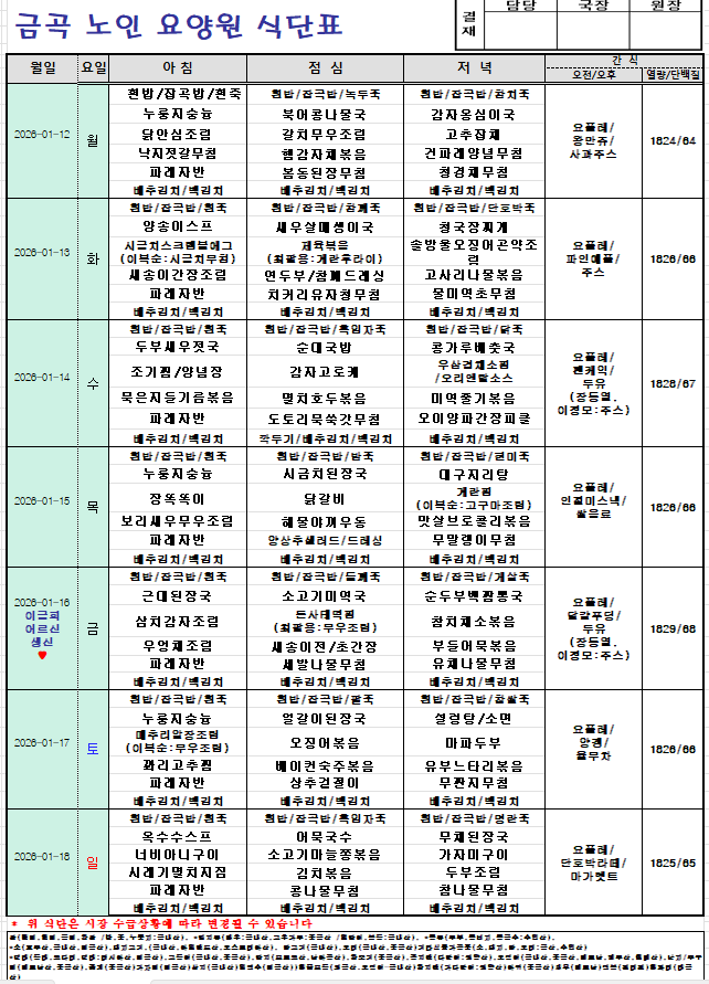 2026년 1월 12일~1월18일 주간식단입니다^^