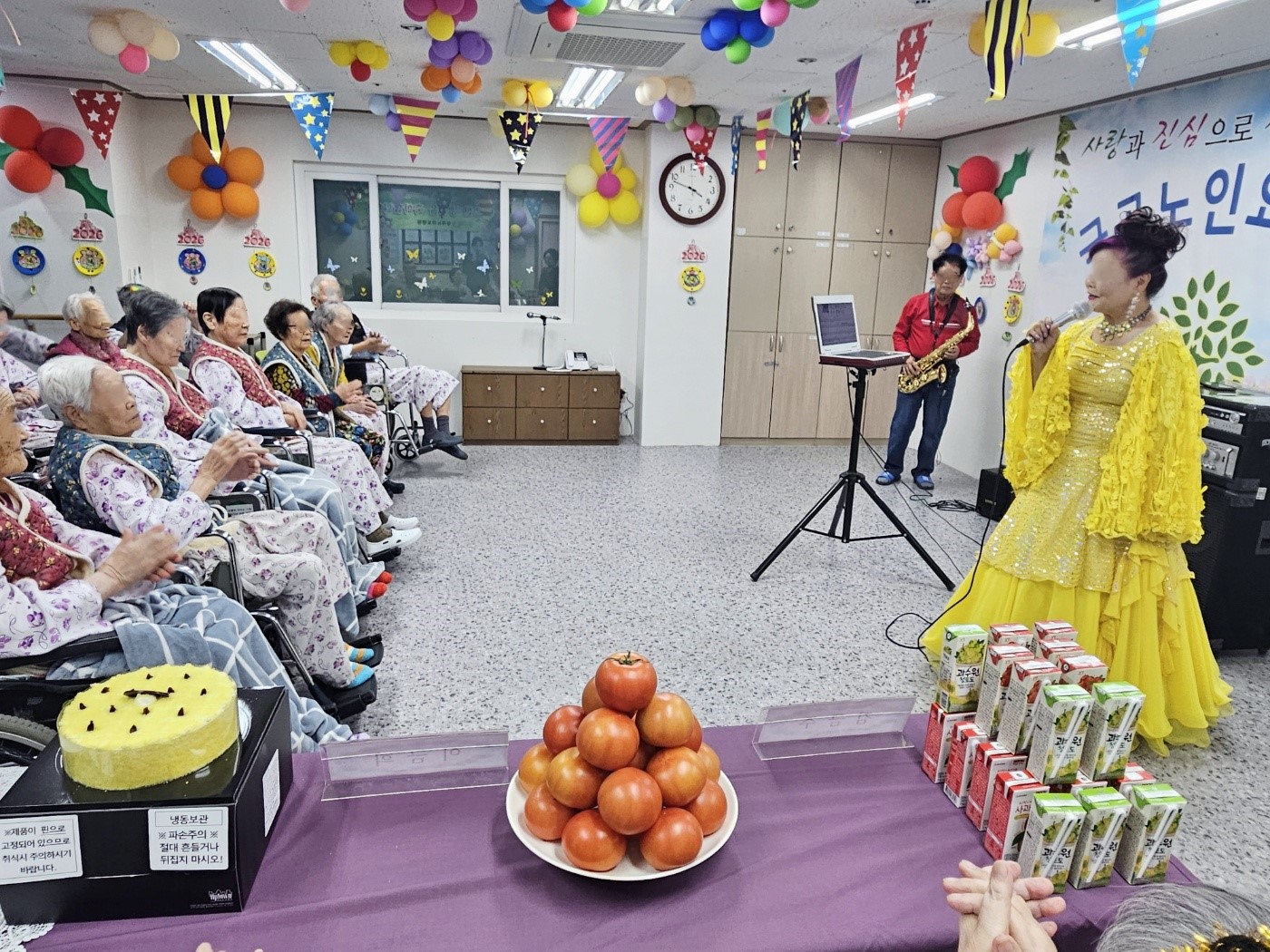 ♥ 1,2월 단체 생신잔치 입니다. 생신인 어르신들께 축하송 불러드리고 늘봄예술단 공연 관람 하였습니다^^