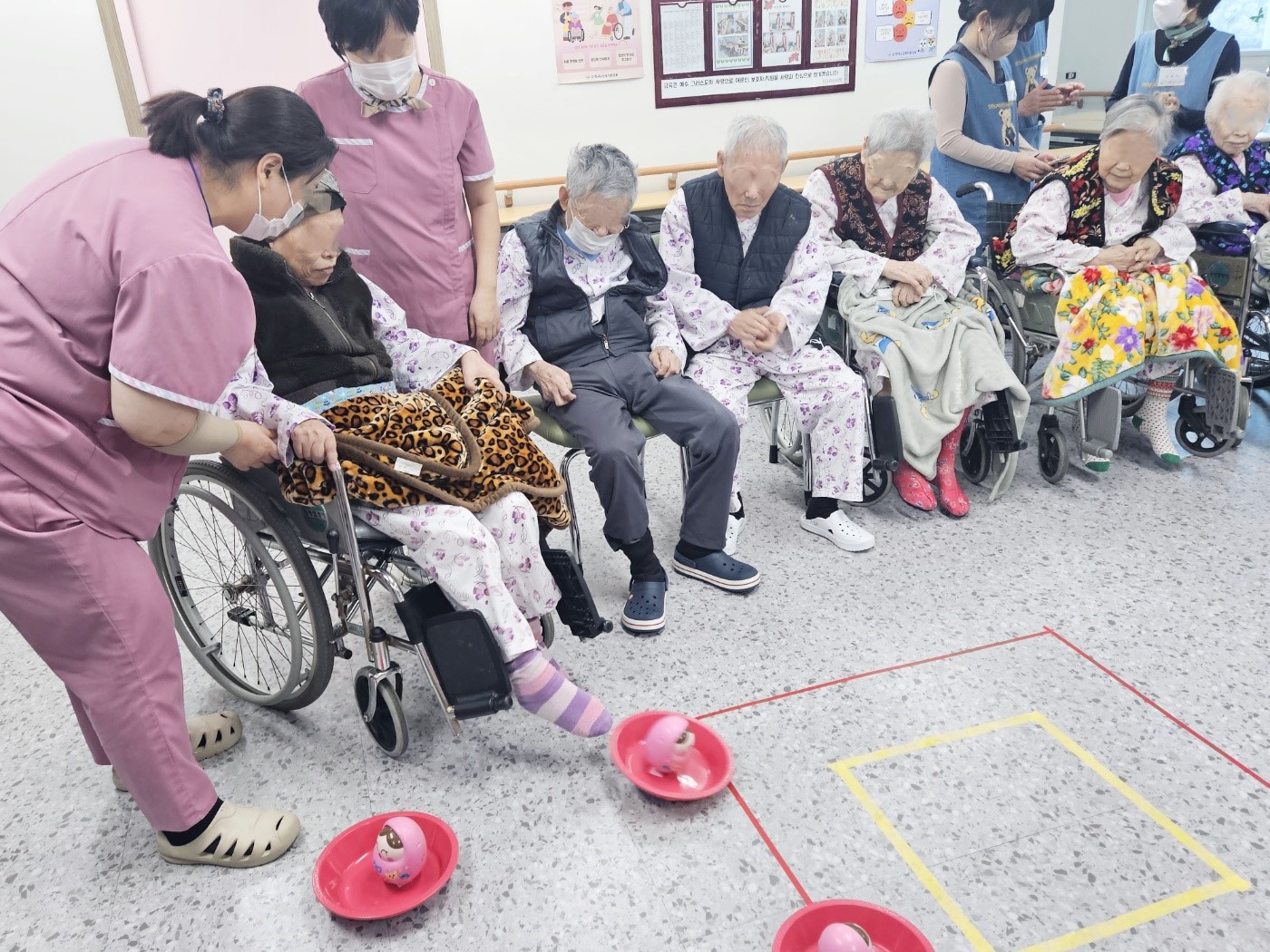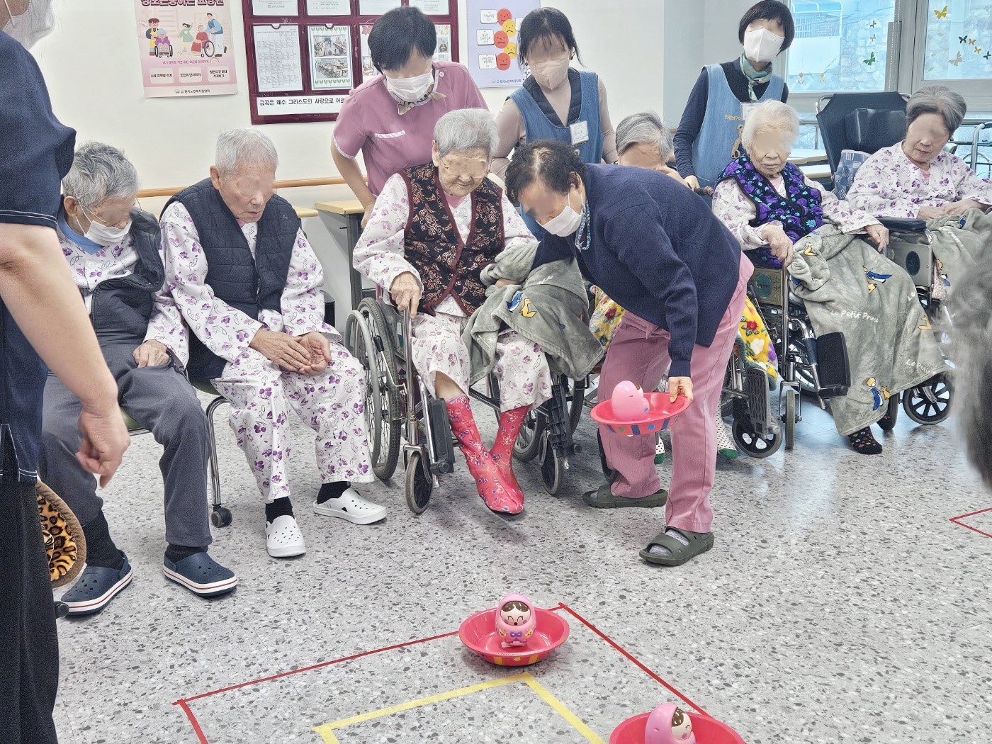 다음 활동으로 썰매를 발로밀어서 점수내기 게임을 진행하였어요~