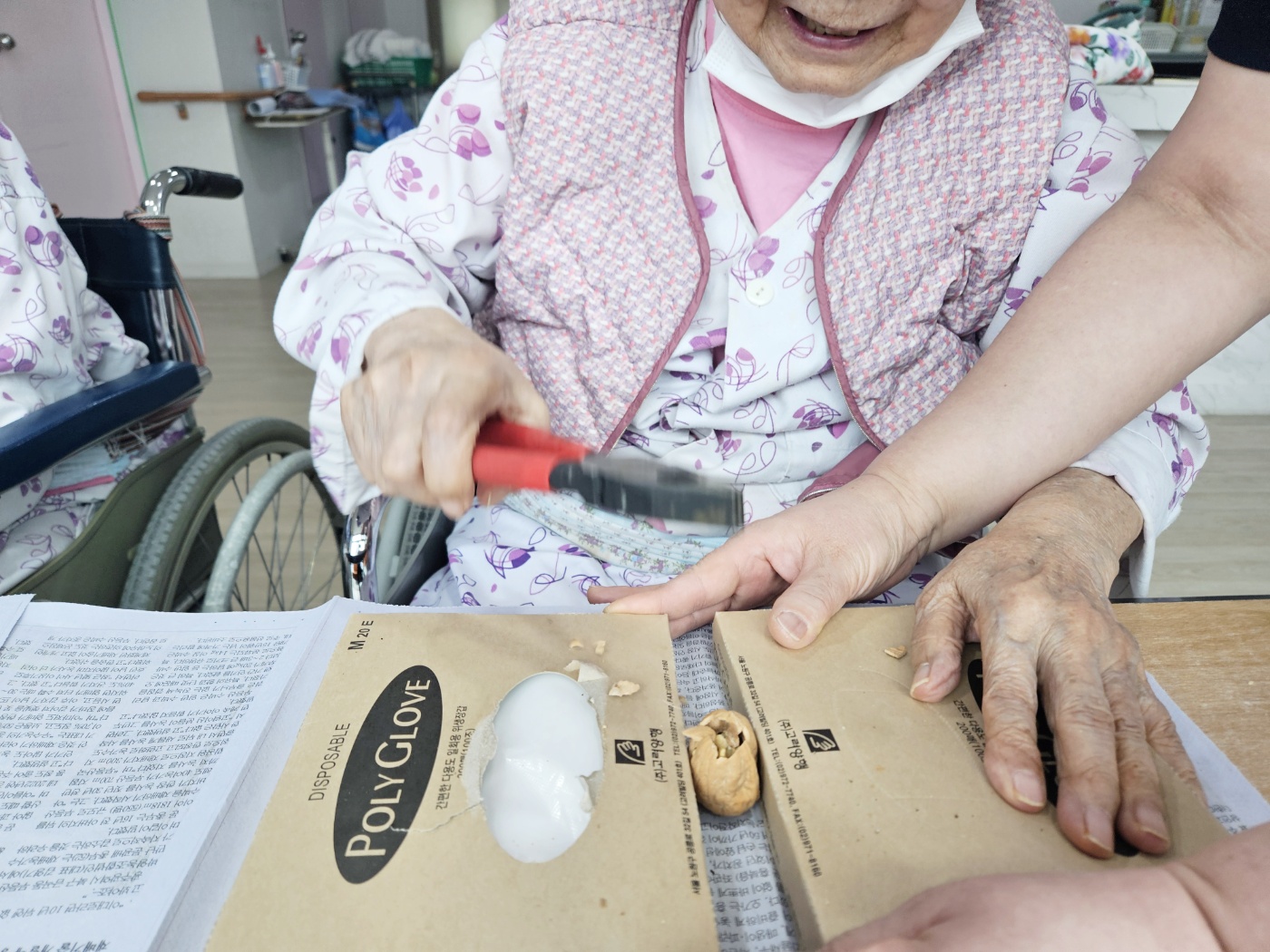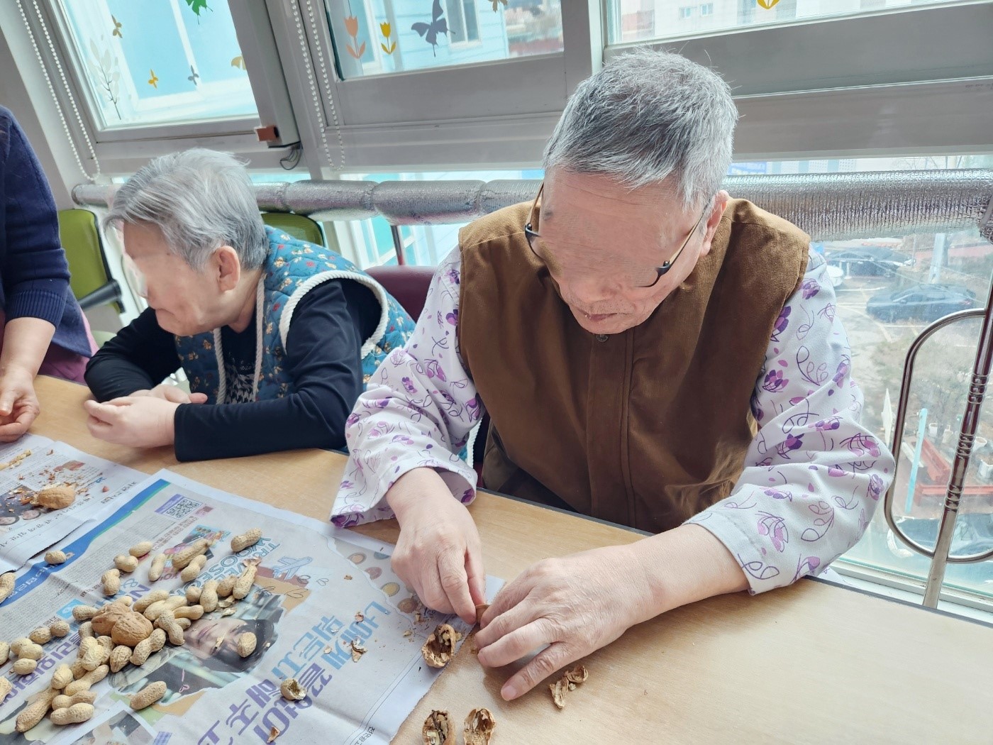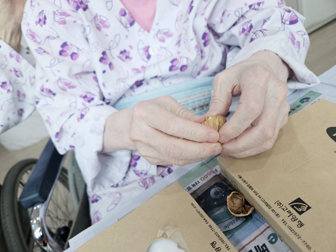 건강을 기원하면서 직접 깬 호두와 땅콩을 드시니 오늘하루가 매우 기대된다고 말씀하시네요~