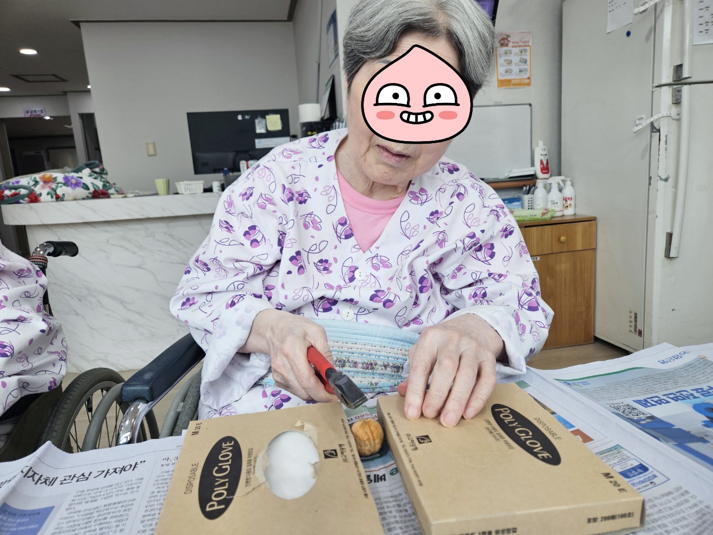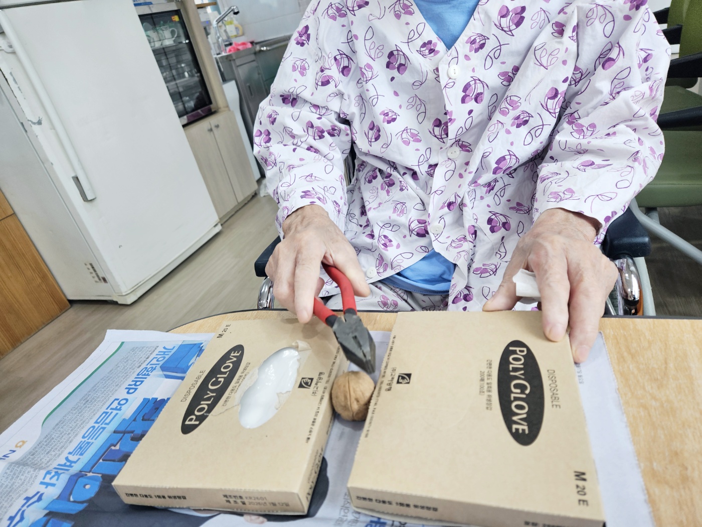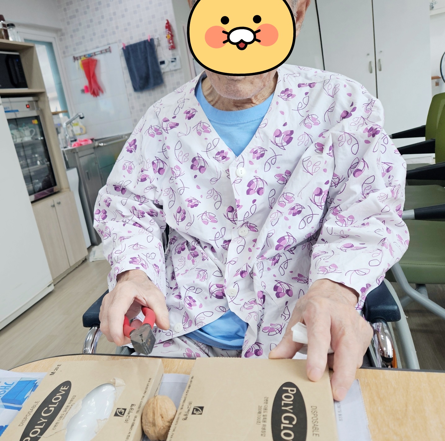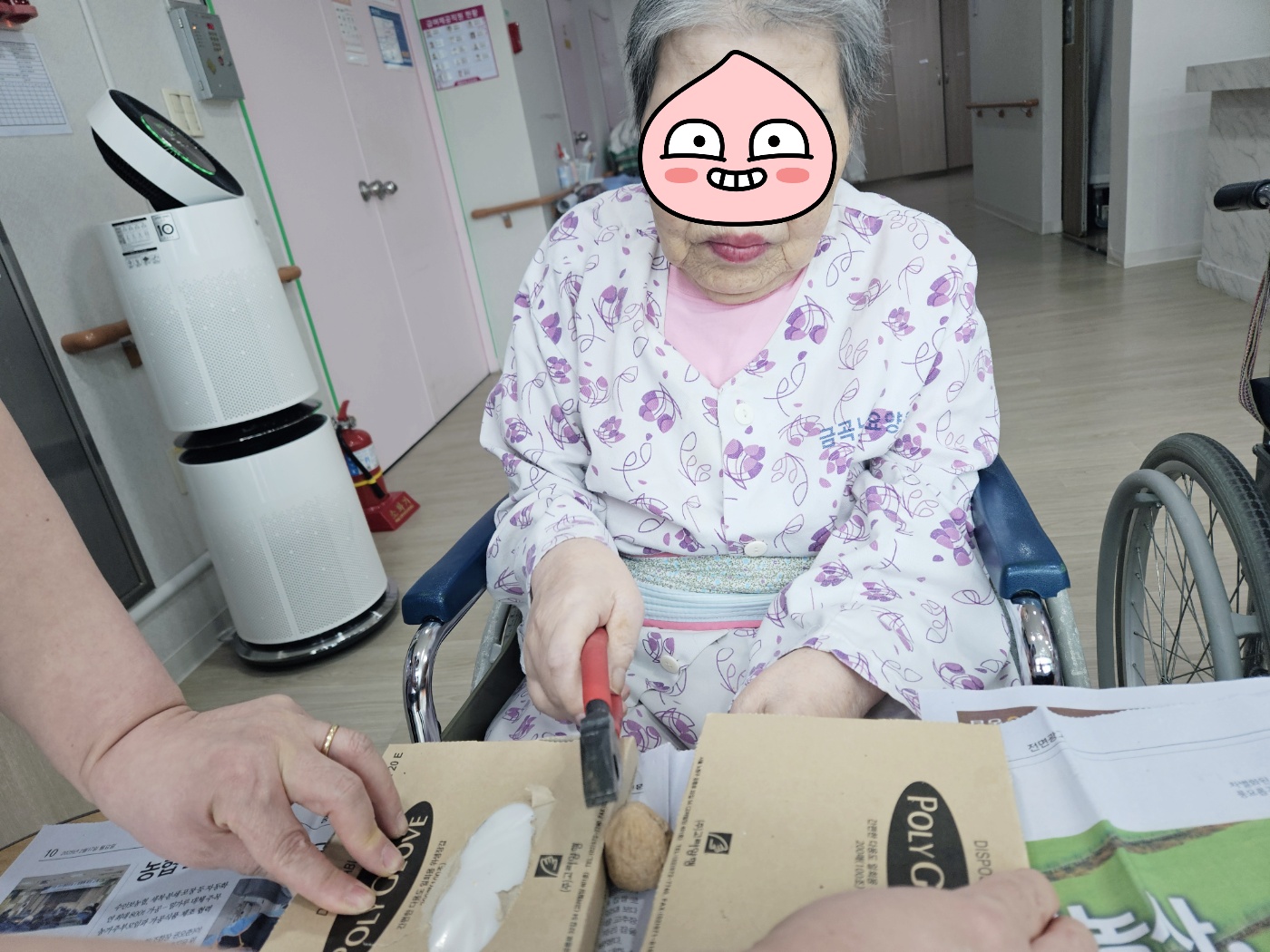 건강을 기원하면서 직접 깬 호두와 땅콩을 드시니 오늘하루가 매우 기대된다고 말씀하시네요~