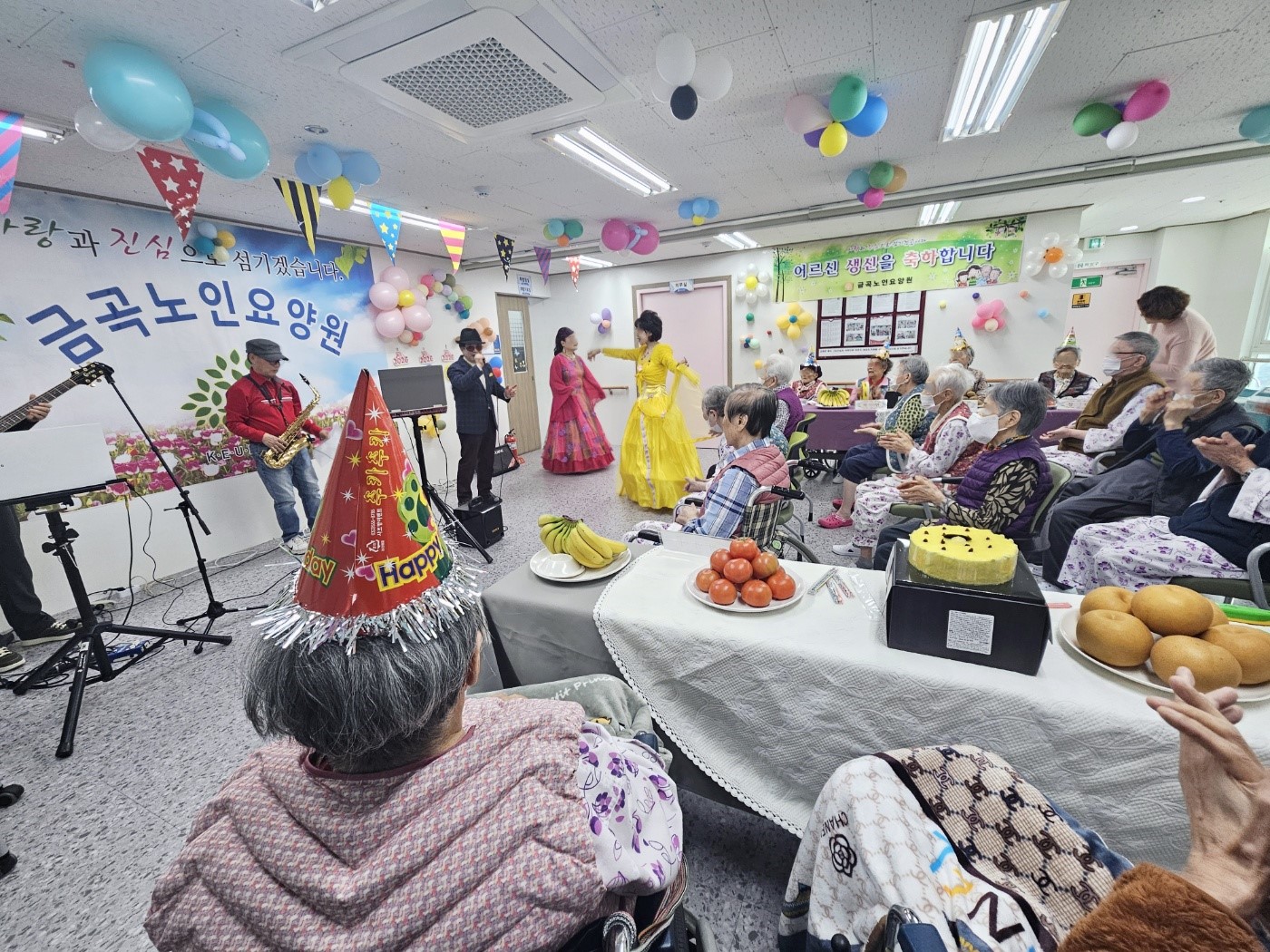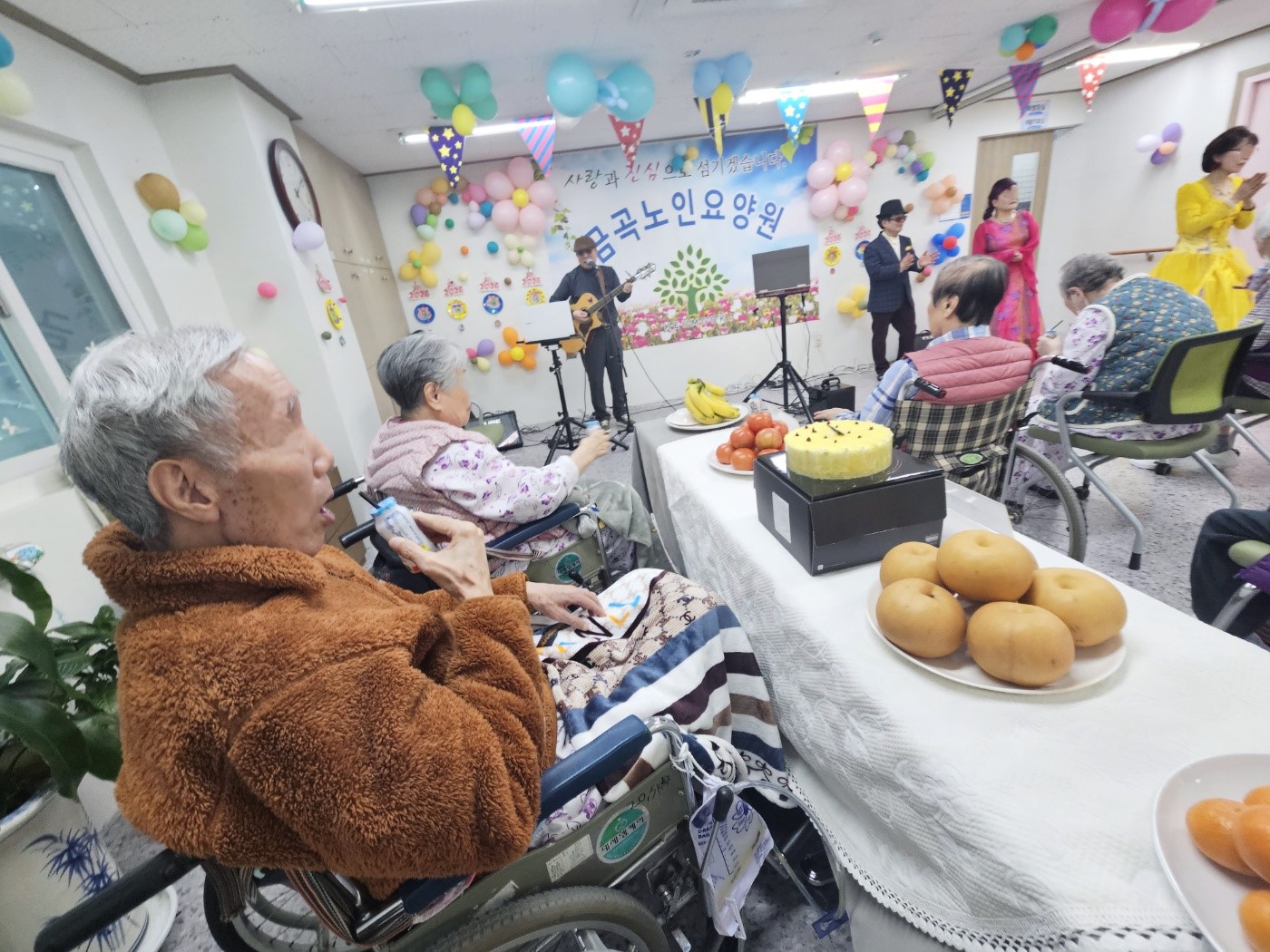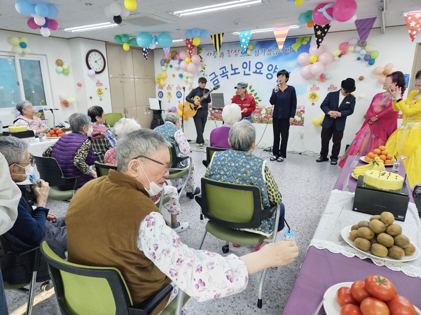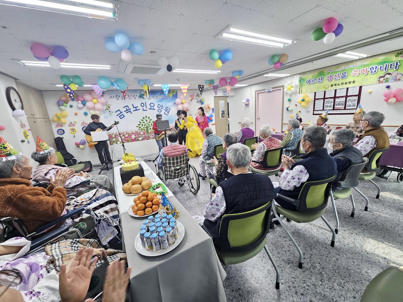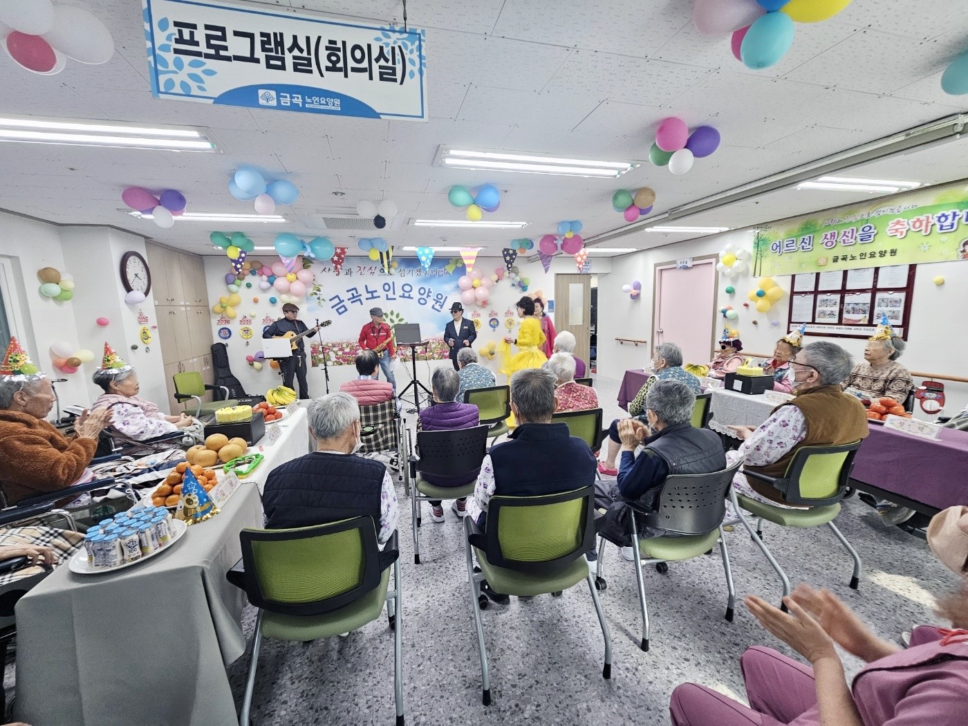 공연관람후 생신상 간식을 다같이 나누어 먹으며 즐거운시간을 보냈습니다