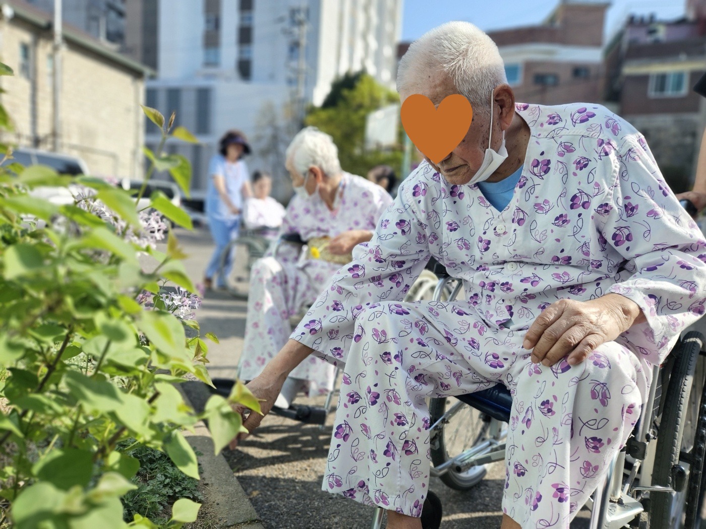 ♥ 어르신들과 요양원앞에 산책나왔어요~!